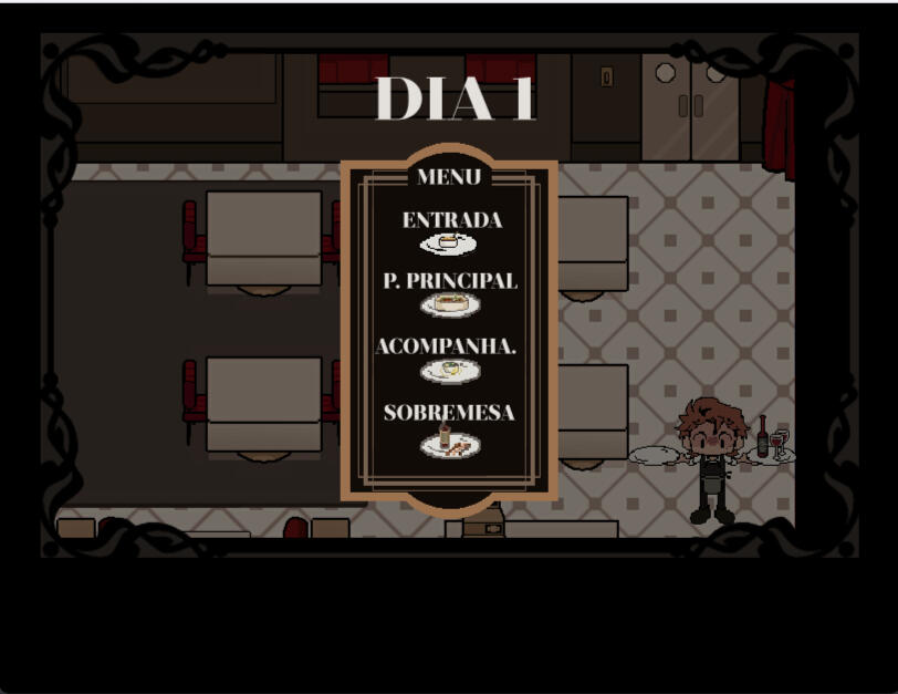 morte gráfica, sangue, gore, violência, canibalismo, luzes piscantes, imagens e áudios perturbadores.Se for sensível a esse tipo de conteúdo, não joguem.💔 BUGS CONHECIDOS 💔- Se você não consegue interagir com os objetos, certifique-se de estar pressionando a direção correta (pressione as teclas de seta primeiro) antes de pressionar [Z].- Se você não consegue limpar uma mesa, tente pressionar [Z] no canto inferior direito da mesa.- Há um glitch inconsistente de corpo duplicado onde, às vezes, dois sprites do protagonista aparecem em vez de um no final de um dos finais. Se isso acontecer, por favor, ignore.